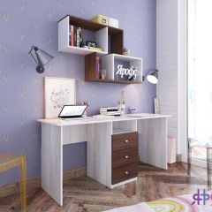 Двухместный стол имеет оптимальную форму и размер, чтобы разместить его вдоль стены в любом месте комнаты, у него большая рабочая поверхность, на которой легко встанет ноутбук или небольшой компьютер. Вы можете выбрать подходящие именно вам цветовое оформление каркаса и фасада двухместного стола для детской комнаты, в частности, чтобы он подходил под остальной комплект модульной мебели или ваш интерьер.
