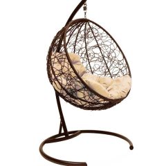 Подвесное кресло КОКОН "КРУГЛЫЙ" ротанг (каркас коричневый)